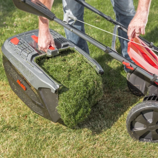 4INONE function byder på klipning, opsamling, bioklip og sideudkast af græsset på plænen. Det ergonomiske skaft øger komforten under arbejdet. MaxAirflow-Technology sikrer, at det afklippede græs sendes gennem det ekstra høje stålskjold til den 60 l store opsamler, der bliver fyldt til randen og dermed ikke skal tømmes så ofte.