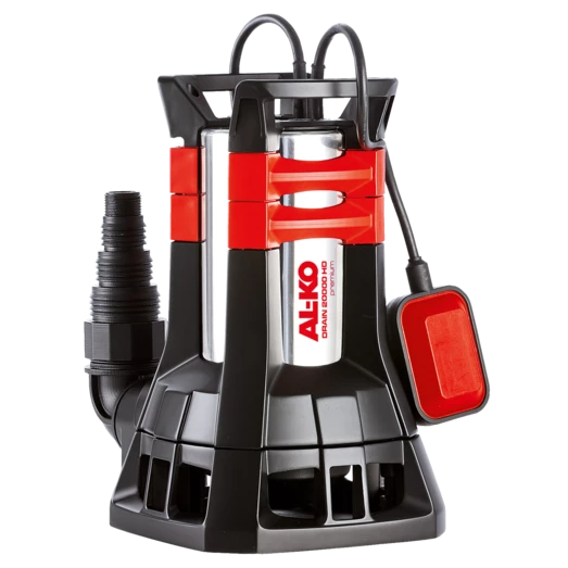 Ekstremt kraftig, kompakt og pålidelig AL-KO dykpumpe til urent vand DRAIN 20000 HD udført i rustfrit stål, pumper takket være den store indsugningsåbning problemløst også vand med smuds og flydende partikler, op til 38 mm kornstørrelse.