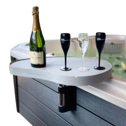 Borbordet er fremstillet med en rille, der sikrer at vandet løber af bordet. Bordet er nemt at sætte på og tage af alt efter behov. Monter bordet på siden af sit udespa eller afmonter det igen når du skal have cover på.