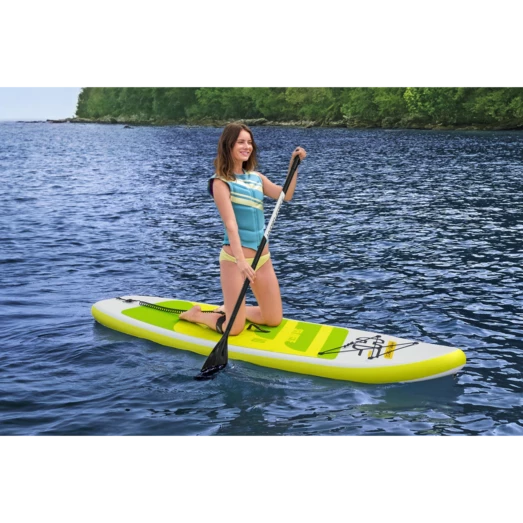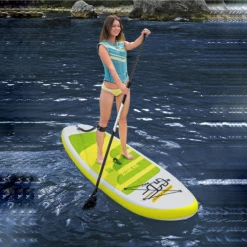 Lækkert kompakt surfboard, der giver god stabilitet og høj manøvre frihed – helt perfekt til stille vand og små bølger. Paddlwboardet drop stitch materiale giver uovertruffen styrke og holdbarhed med tusindvis af polyester tråde. Trådene forbinder sikkert materialefladerne internt som forsejler luften for at holde brættet oppustet og stift men alligevel let.