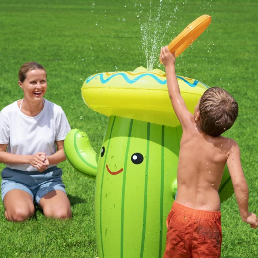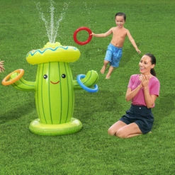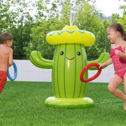 Sød kaktus sprinkler med arme til at fange ringene du kaster. Tilkobel vandslange til kaktusen og du har en masse sjove timer med leg i haven.