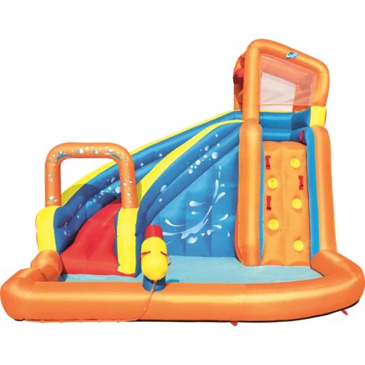 Med dette vandbassin til børn får du dit helt eget vandland i haven. Hurtig opstillet og klar til brug takket være den medfølgende elektriske pumpe (fuldt oppumpet på mindre end 2 minutter). Vandkanonen tilsluttes haveslangen – haveslangen skal tilkøbes.