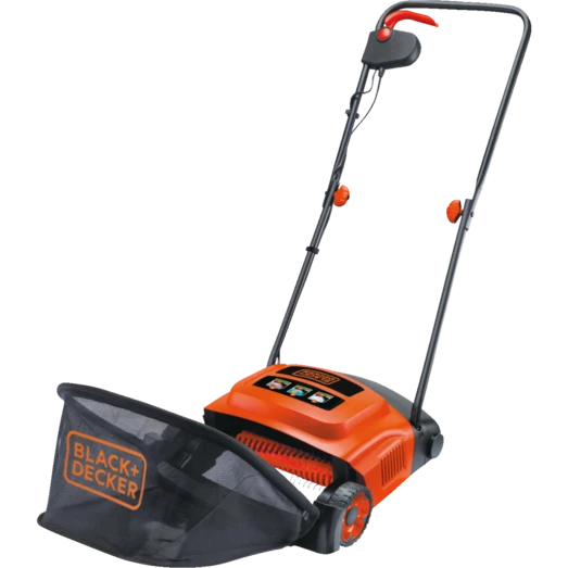 Black+Decker 600W mosfjerner og plænelufter er med 30 cm rivebredde og ideel til mellemstore haver