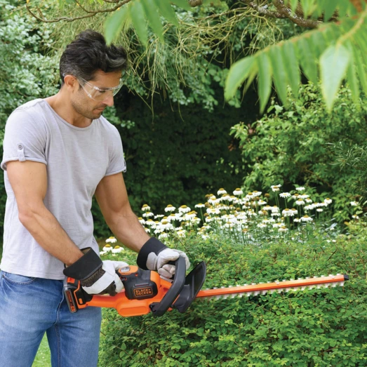 Effektiv og let hækkelipper fra Black & Decker der er perfekt til mellem store hække. Hækkeklipperen er udstyret med PowerCommand der sikrer at maskinen kan skærer igennem grene og tykkere kvas uden skade på klingen. Endvidere er hækkeklipperen designet med tohåndsafbryder, komfortabelt greb i flere arbejdsretninger der giver god komfort, samt langt svær på 45 cm.