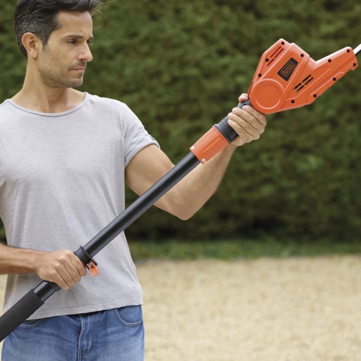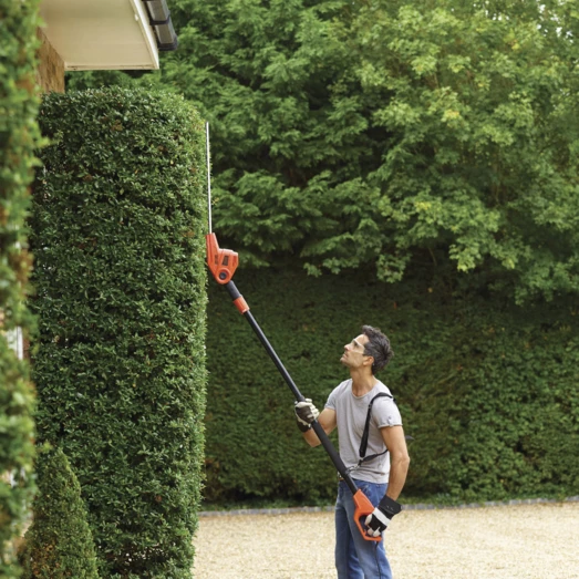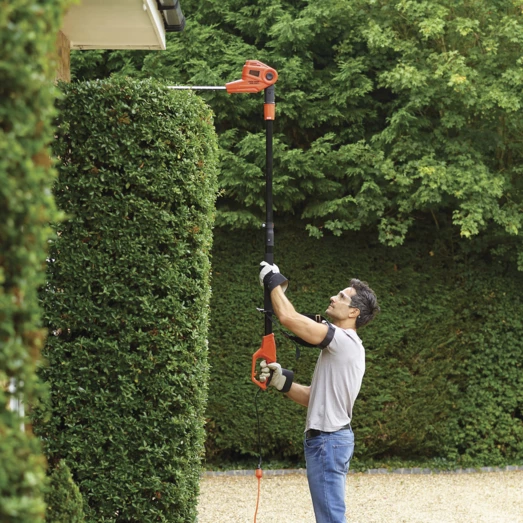 Black & Decker hækkeklipper på skaft 550W - Kan udvides op til 2,3m i brugbar længde, som giver ca 3,8m rækkevidde – Ideel til klipning af ekstra høje hække.