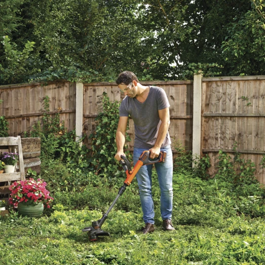 18V 4.0Ah Lithium-ion græstrimmer med klippebredde på 30cm og Automatic Line Feed System. Med Power Select Runtime Extender kan du øge styrken ved overbevoksede områder og mindske styrken ved nemmere opgaver for at forlænge batterilevetiden. Den nye flip-til-kant mekanisme gør det nememre end nogensinde før at konvertere din græstrimmer til kantklipning med præcisions guidehjulet til at hjælpe dig med at få helt perfekte kanter på din plæne. En del af BLACK+DECKER 18V lithium-ion systemet. Et batterisystem, uendelige muligheder.