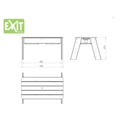Exit sandkassen er fremstillet i holdbart cedertræ der er “imprægneret” fra naturens side og således beskyttet mod vind og vejr. Sandkassens sider er malet med vandbaseret maling, og bliver leveres med låg, så sandet holdes rent. Sand- og vandbordet har to grønne kasser, der kan fyldes med vand eller sand, eller de kan bruges til opbevaring af legetøj. Kasserne er aftagelige og er derfor lette at rengøre. Den medfølgende parasol samt haveredskaber bidrager til endnu mere sjov – også på varme sommerdage.