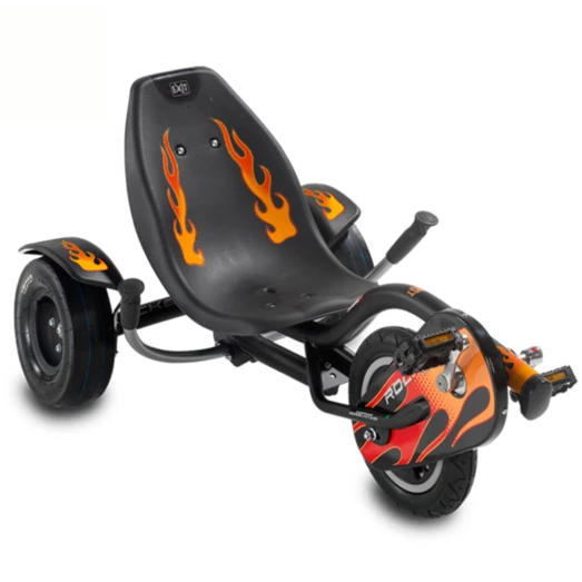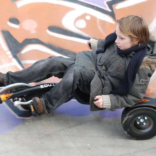 Nem og intuitiv styring, det patenterede styresystem med gummiophæng giver en komfortabel køreoplevelse og gør det nemt for selv de mindste, at rette sig op til lodret position efter at være kommet ud af et sving. Det lave ergonomiske sæde giver en fantastisk oplevelse af fart gennem svingene samtidig med at man sidder sikkert og komfortabel, samt giver de brede gummi baghjul et godt greb i underlaget og sikker styring.