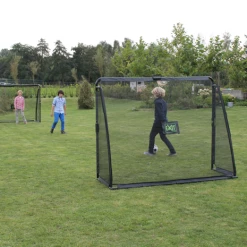 Coppa fodboldmål med sit sorte galvaniserede og pulverlakeret stel, egner sig godt til alle typer haver og fodboldbaner. Målet står i sig selv godt fast – men kan yderligere forankres så det står helt stabilt og fast, med et unikt forankringssystem. Coppa fodboldmål leveres med kraftigt fintmasket net og en præcisions måldug, til træning af skudteknikker – og ser samtidigt godt ud i haven med sit elegante design, samt er målet nemt at samle – og let at flytte. Når der skal slås græs løftes målet frit af forankringssættet – og græsslåmaskinen kan nemt kører hen over jordspydet. Det er smart!