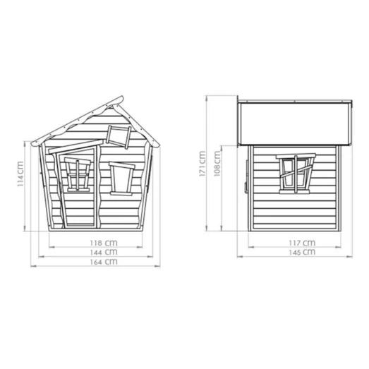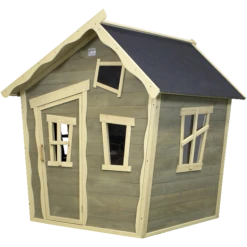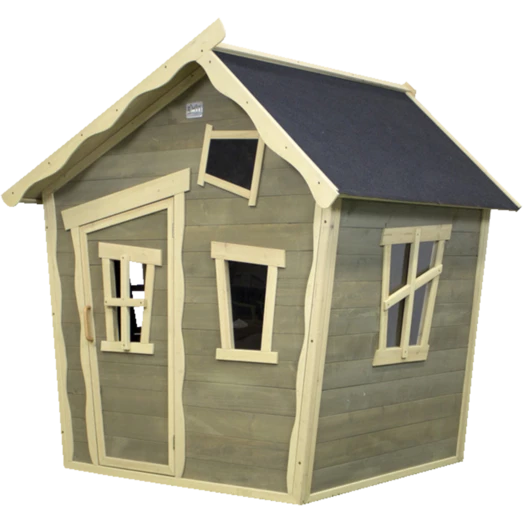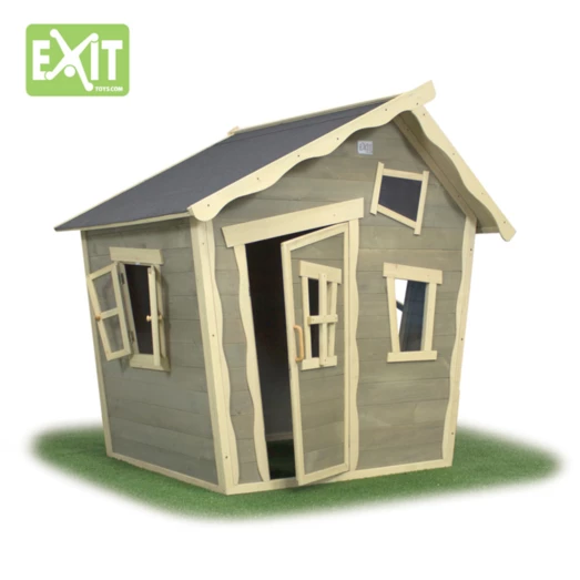Exit Crooky 100 Er som navnet antyder et lidt crooky legehus. Med sine skæve vinkler og assymetriske vinduer og døre skaber det et indtryk af en rigtig hjemmebygget hytte. Børnene vil elske dette skæve hus der hurtigt vil blive deres favoristed når de skal lege med søskende og venner der er på besøg.