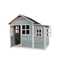 Exit Crooky 350 Er som navnet antyder et lidt crooky legehus. Med sine skæve vinkler og assymetriske vinduer og døre skaber det et indtryk af en rigtig hjemmebygget hytte. Børnene vil elske dette skæve hus der hurtigt vil blive deres favoristed når de skal lege med søskende og venner der er på besøg.