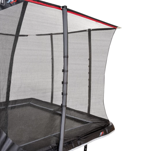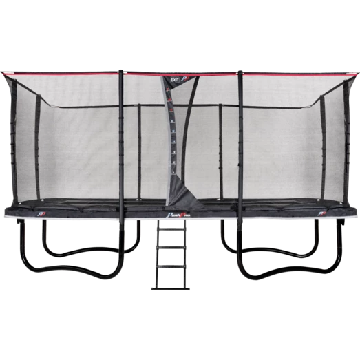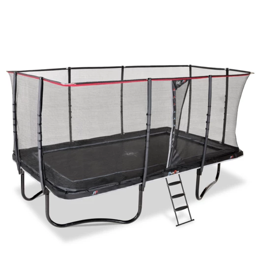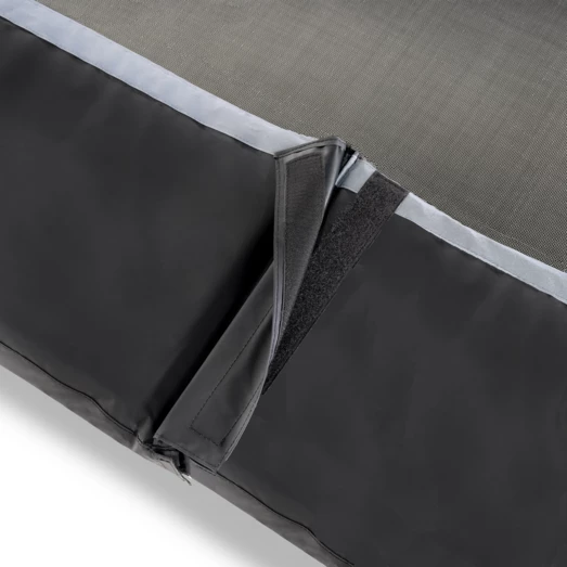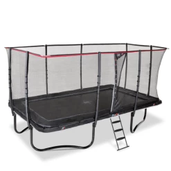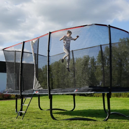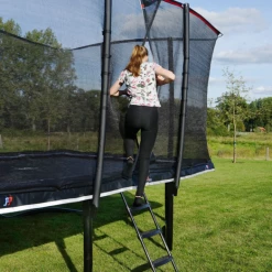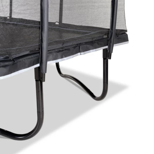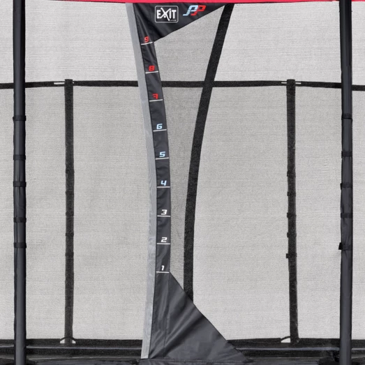 Højkvalitets trampolin fra Exit, der er særligt velegnet til børn, som allerede er erfarne springere. Trampolinen har et sikkerhedsnet og beskyttelsespolstring, der giver mulighed for førsteklasses spring og stor beskyttelse, selv under en eventuelt springfejl. Sikkerhedsnettet har samtidig en højdeskala, hvilket gør at højden på springene kan måles. Det specielle fodbeskyttelsessystem forhindrer fødder i at blive fanget i fjedrene mens der springes. Der medfølger en trampolinstige, så man hurtigt og sikkert kan klatre op på trampolinen.