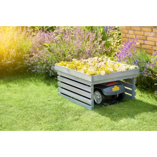 Beskyt din robotplæneklipper mod nedbør med denne smarte Grouw garage til robotplæneklipper.