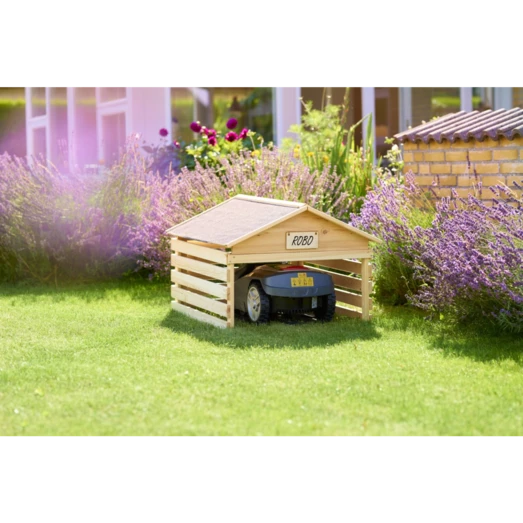 Beskyt din robotplæneklipper mod nedbør med denne smarte Grouw garage til robotplæneklipper.