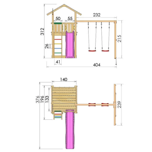 - Legetårnets mål Areal ekskl. sikkerhedsareal legetårn: B:373 x D:204 x H: 312 cm