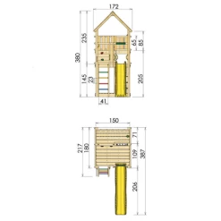 - Legetårnets mål Areal ekskl. sikkerhedsareal: B:387 x D:172 x H: 380 cm
