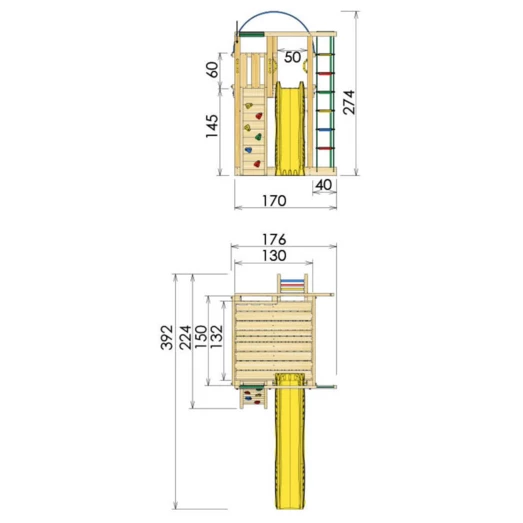 - Legetårnets mål Areal ekskl. sikkerhedsareal: B:392 x D:176 x H: 274 cm