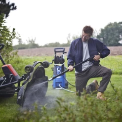 Højtryksrenseren i ergonomisk design, gør det let at arbejde i længere tid og transportere renseren med den integrerede kørevogn med aluminiumsteleskophåndtag. Maskinen har automatisk start/stop funktion og trykregulering, som gør det let at kontrollere trykket, når der er skal arbejdes.