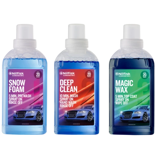Skal bilen vaskes og vokses, med dette 3-i-1 sæt til bilvask fra Nilfisk, får du alt du skal bruge i en pakke.