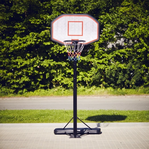 Basketball standeren PRO fra NORDIC Games er en mobil og meget solid basketball stander i en rigtig god kvalitet. Basen er bred og kraftig, så den kan bære kurven uden at vælte i stormvejr, når bare den er fyldt med sand eller vand. På selve standeren er der to håndtag, så man nemt kan justere kurvens højde, så både de yngste og de ældste kan få glæde af basket standeren. Den kan justeres fra 200 til 305 cm. I basen er der indbyggede hjul, som gør den let at flytte på, på trods af det er en stor og tung stander.