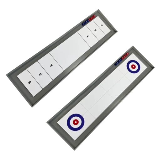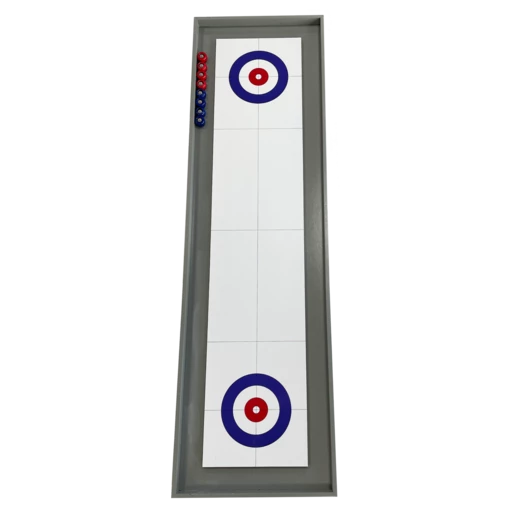 2-i-1 shuffleboard og curling spillepladerne er lavet i krydsfiner og har en lakeret spilleflade som giver det bedste glid. Det er ikke nødvendigt med sand eller voks som man kender det fra de store professionelle shuffleboards: Det er lige til at gå i gang med at spille!