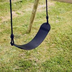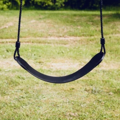 NORDIC PLAY Blød gynge fremstillet i blød, sort plast med justerbart reb ligeledes i sort farve med ophæng i galvaniseret runde ringe. Leveres eksklusiv gyngekroge/gyngebeslag.