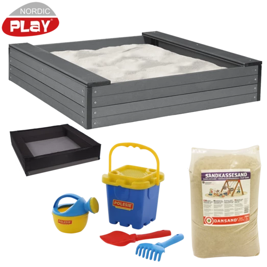 Nordic play sandkasse WPC inkl. sand + blå spand 120×120 cm