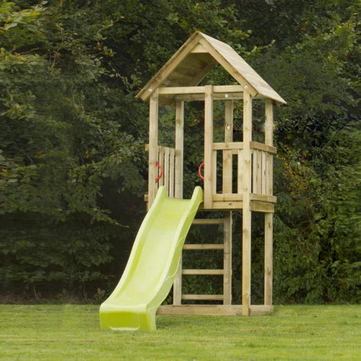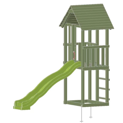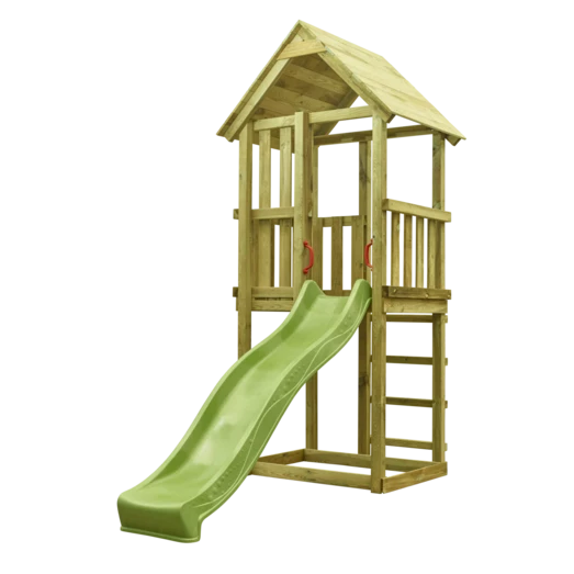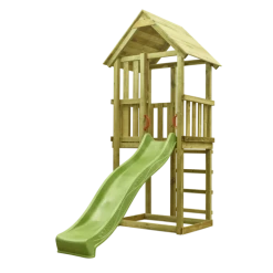 Klassisk legetårn fremstillet i trykimprægneret gran i den velkendte kvalitet fra danske Plus, her får du et legetårn i bedste kvalitet som børnene vil have glæde af i mange år fremover og hvor du trygt kan lade dem lege i timevis. Legetårnet er udstyret med stige op til platformen hvorfra de kan tage den grønne rutchebane på nedturen.