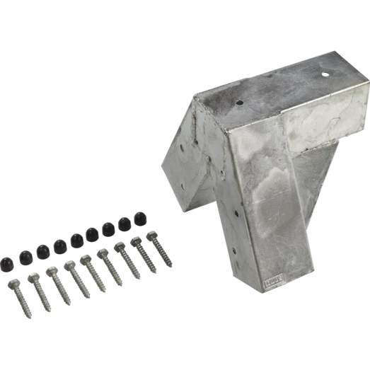 Cubic samlebeslag fra Plus til 3- ben gyngestativ. Beslaget passer til Plus høvlet stolperne der måler 88×88 cm og har en godttykkelse på 2 mm