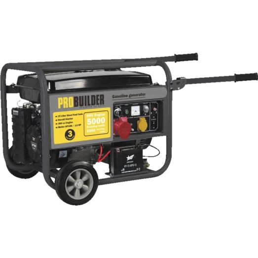 Denne Probuilder benzin-generator er en kraftig 3-faset model med el-start. Den har udtag til 400 Volt og 230 Volt (AC) samt 12 Volt (DC).