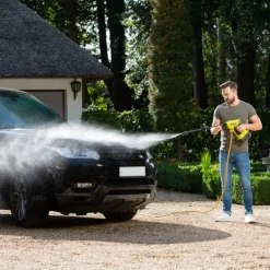 Nem rengøring af udendørs områder og overflader, alt du skal gøre for at komme igang er at tilslutte almindelig vandslange eller den med sugeslange.