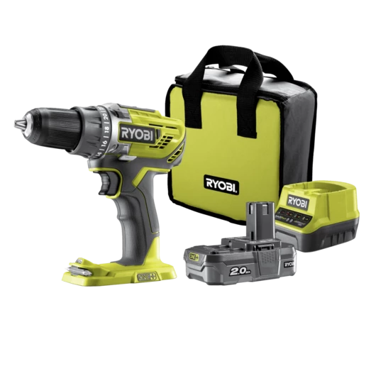 Ryobi R18DD3-120S er en kraftuld bore-/skruemaskine med et 18V Lithium+ 2,0Ah batteri. Bore-/skruemaskinen har maser af kraft og klarer nemt skrueopgaver i træ og metal. Derudover er den også optimal til opgaver som bl.a. samling af skabe.