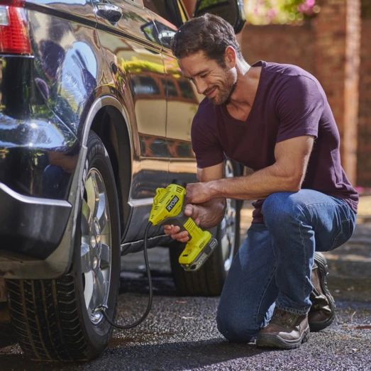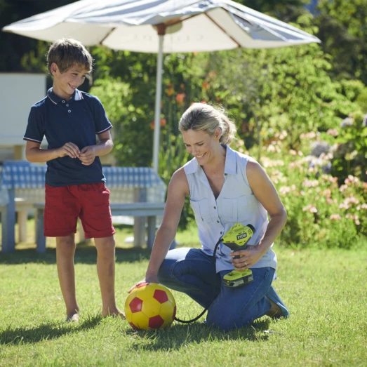 Når dækket eller bolden er flad klarer Ryobi R18PI-0 akku minikompressor 18V oppumpningen nemt og enkelt.