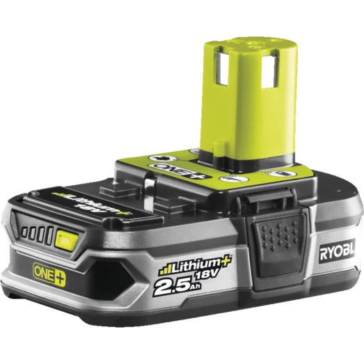 Egenskaber for Ryobi RB18L25 batteri 18V - Kraftigt 2,5 Ah Lithium+ batteri, giver mere kraft længere driftstid og bedre holdbarhed end tidligere Lithium teknologier