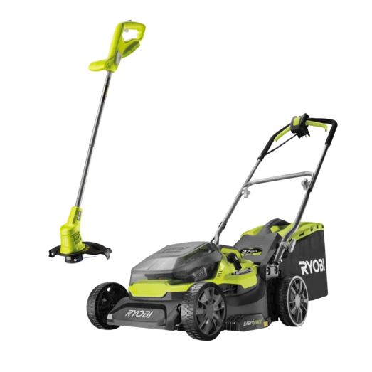 Super lækkert sæt med Ryobi RY18LMH37A plæneklippper og Ryobi OLT1825 græstrimmer samt 2 x 5,0 ah batteri og lader. PLæneklipperen kan er en hybrid maskine som enten kan køre på el (230v) eller ved at benytte de to medfølgende batterier. Hybrid plæneklipper med 18V giver den batteridrevne frihed, samt giver mulighed for at tilslutte strøm.