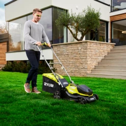 18V plæneklipper i Ryobis ONE+ serie der passer batteri med alle øvrige Ryobi ONe+ havemaskiner og elværktøj.