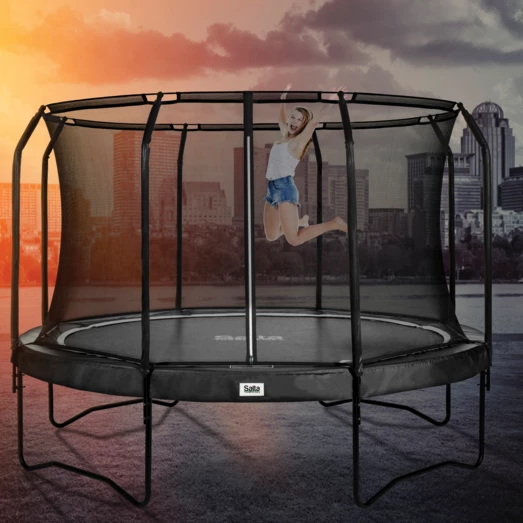 Salta Premium Black Edition er en innovativ serie af trampoliner udført i høj kvalitet med fokus på sikkerhed, holdbarhed i et flot design. Det flotte sorte design giver et enkelt og eksklusivt look i din have – selv benene er sortlakeret. Montering af Premium Black Edition gøres let og komfortabelt uden at der er gået på kompromis med den høje sikkerhed. Tilbehør (ikke inkluderet): Sortlakeret Salta trampolin stige, stormankre samt cover