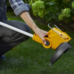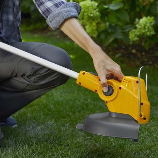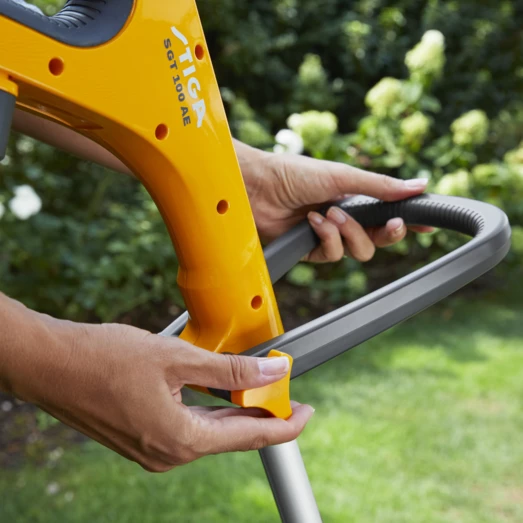 STIGA SGT 100 AE er en batteridrevet græstrimmer, der er ideel til trimning af græs i alle hjørner af haven. Denne lydsvage og miljøvenlige batteridrevne græstrimmer har en klippebredde på 25 cm. Det justerbare rigrør og det drejbare trimmerhoved giver en behagelig arbejdsposition og en helt perfekt trimning – også af plænens kanter. Loop-håndtaget kan nemt justeres til brugerens højde. Batteri (2 Ah) og oplader medfølger.