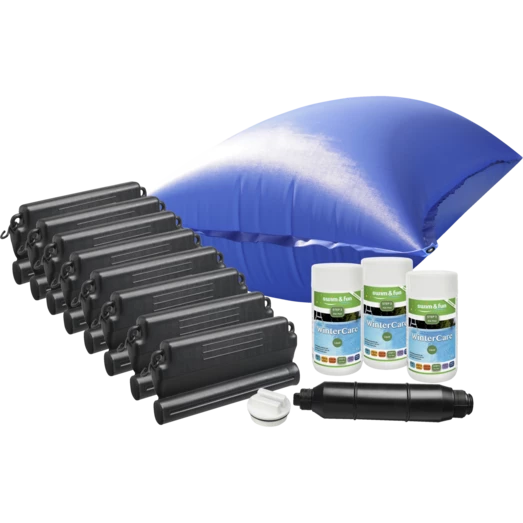 En kold og våd vinter kan være barsk mod din pool. Med denne vinterpakke er du godt sikret mod skader fra f.eks. istryk og opsamlet smelte- og regnvand ovenpå poolen. Det er alt hvad du skal bruge udover cover.