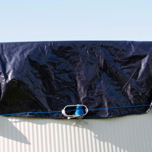 Vintercover med wirelås, som forhindrer vandfordampning og holder blade, snavs og sollys fra poolvandet. Ved at modvirke, at sollys trænger ned i vandet, minimeres grobund for algevækst og belægninger. Coveret er fremstillet i ekstra stærkt dobbeltcoated 120 gr/m² kvalitet med marineblå overside og sort underside.