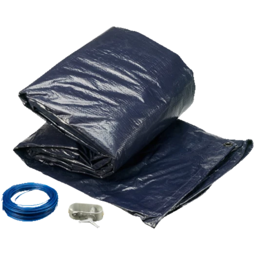 Vintercover med wirelås, som forhindrer vandfordampning og holder blade, snavs og sollys fra poolvandet. Ved at modvirke, at sollys trænger ned i vandet, minimeres grobund for algevækst og belægninger. Coveret er fremstillet i ekstra stærkt dobbeltcoated 120 gr/m² kvalitet med marineblå overside og sort underside.