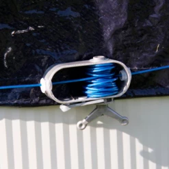 Vintercover med wirelås, som forhindrer vandfordampning og holder blade, snavs og sollys fra poolvandet. Ved at modvirke, at sollys trænger ned i vandet, minimeres grobund for algevækst og belægninger. Coveret er fremstillet i ekstra stærkt dobbeltcoated 120 gr/m² kvalitet med marineblå overside og sort underside.