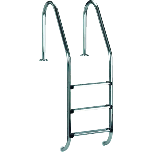Elegant stige i rustfrit stål med tre trin som passer til nedgravet eller integreret pool. Stigens tre trin er belagt med en skridsikker belægning for din sikkerhed. Stigen monteres i f.eks. fliser eller terrasse omkring poolen. Beslag til montering på flisekant eller terasse medfølger.