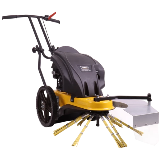 Texas Pro Weed 700 er en benzindrevet fliserenser med en stærk 173 cc 4-takt motor. Pro Weed 700 er udstyret med store 14” hjul med kugleleje, som derved sikrer nem manøvrering gennem forskellige former for terræn, når maskinen kører fremad. En beskyttelsesskærm på venstre side af børsterne fanger flyvende objekter.