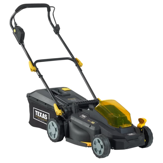 Texas akku-plæneklipper, som klarer op til 400 m². Der medfølger 2 x 18 V 3,0 Ah batterier og oplader.