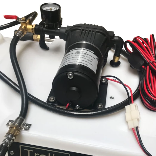 Trolla 100 ltr. sprøjtevogn til hurtig og let spredning af gødnig, kemikalier og insektmidler, inkl. 3 meter spredebom med 6 dyser løs håndsprøjtelanse med 10 meter slange så man kan komme ud i alle hjørner og kroge. Pumpen drives af køretøjets 12 volt batteri tilkoblingen foretages nemt via 2 batteriklemmer.