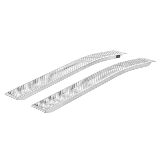 Alu opkørselsramper til f.eks. havetraktoren, ATV etc. disse ramper er erhvervsgodkendt via Force teknologi. Den buede model er især velegnet til havetraktor hvor klippebroen er under traktoren.
