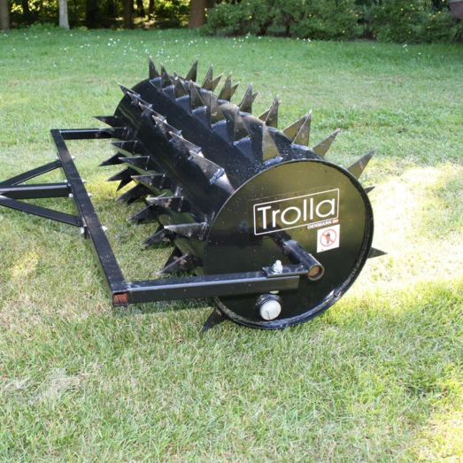 Denne tromle fra Trolla er udstyret med 7,5 cm prikke. Den har en arbejdsbredde på 91 cm og du kan fylde den op med 90 liter vand eller sand. Tromlen er ideel til luftning af din græsplæne, så den holdes pæn, sund og grøn. Produktet er lavet af metal, måler 112x105x40 cm og vejer 64 kg. Når den er fyldt op med vand, har den en totalvægt på 140 kg. Det er vigtigt, at du bruger en trækkraft, som har en motor med min. 12 HK til denne tromle.